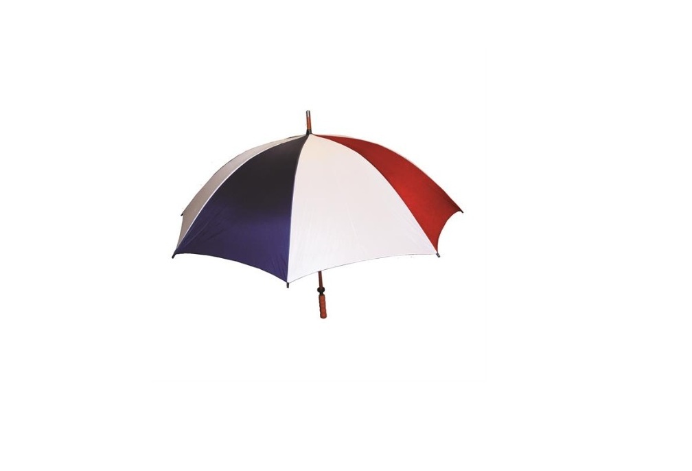 The Eagle. Sporty wood-shaft golf umbrella. Oversized 62-inch coverage area. Quality strong manual wood shaft and good-looking comfortable wood handle. Fiberglass ribs and spreaders for strength and durability. Windproof design. Pewter tip for added strength and a great look. Springs back from heavy winds without breaking. Includes fiberglass construction. Our quality wind-proof wood shaft golf umbrella is available in lots of colors.